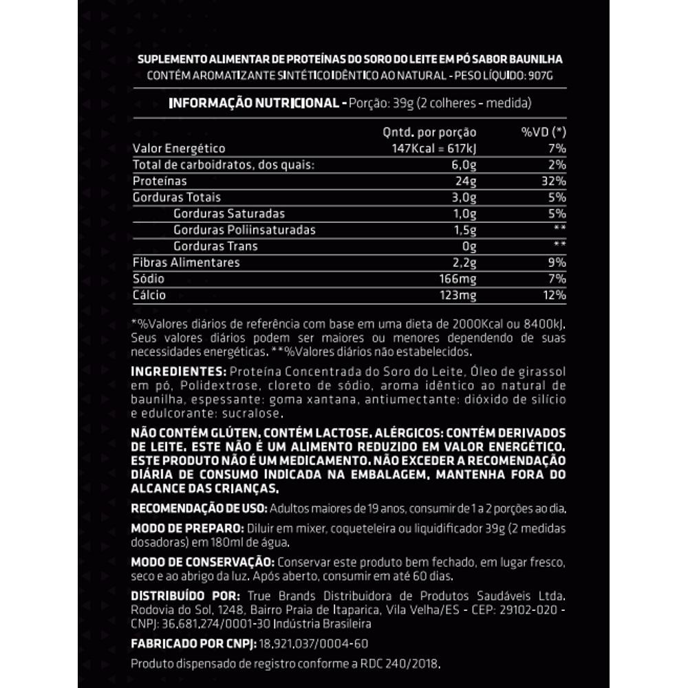 Proteína concentrada do soro do leite em sua mais alta qualidade.